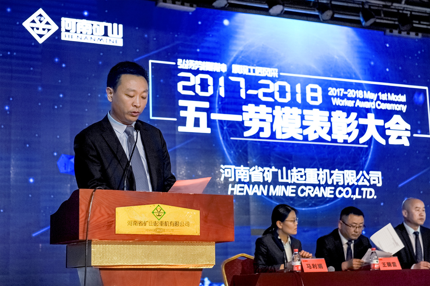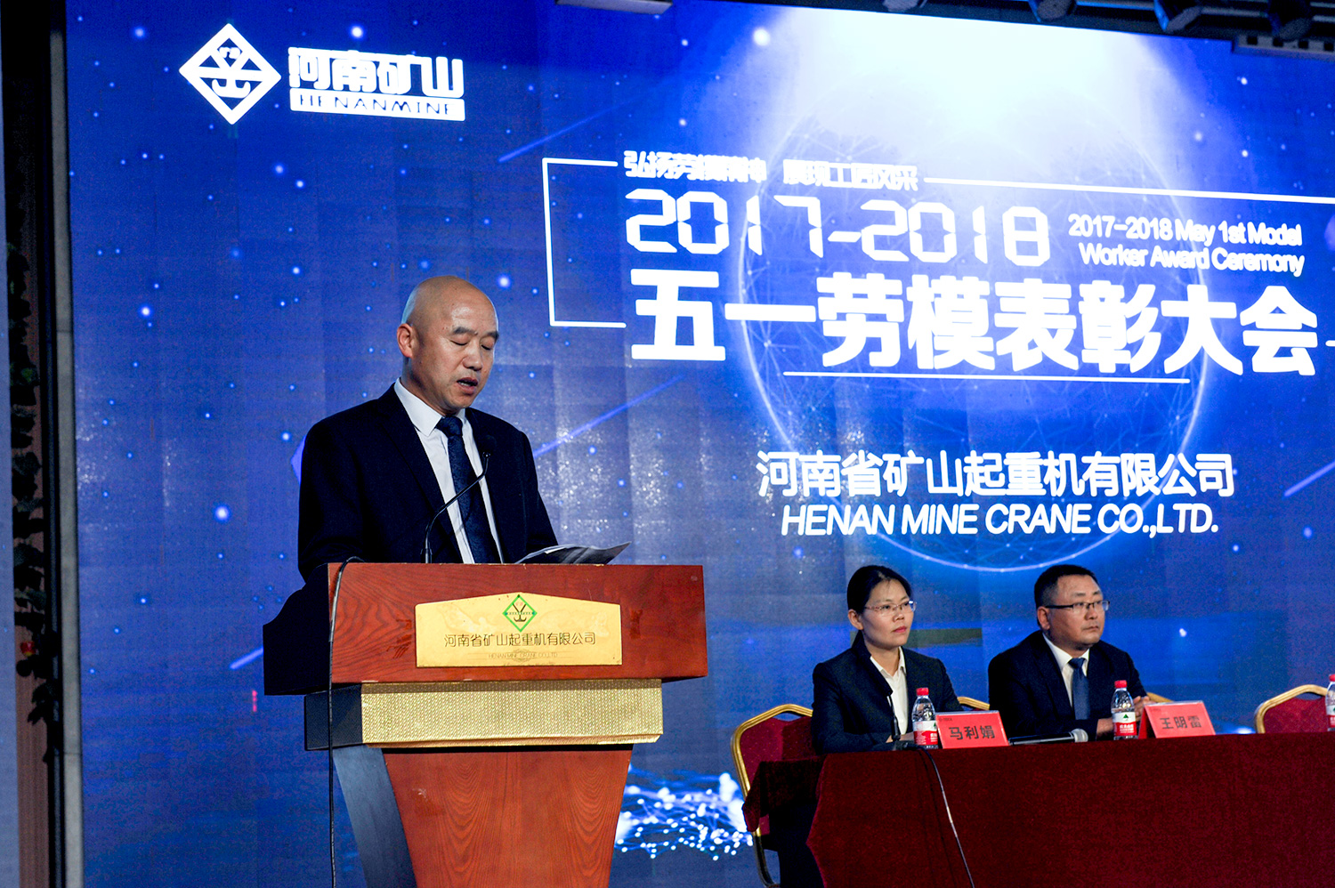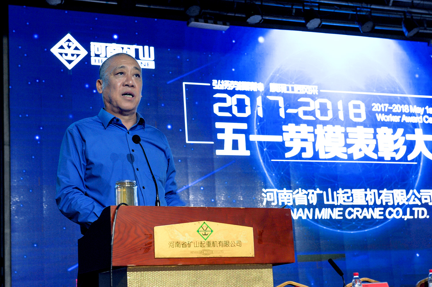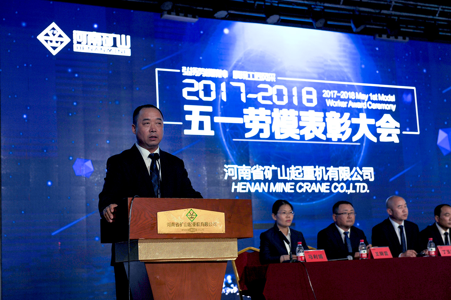 公司創始人、黨委書記崔培軍發表重要講話。他首先向全體員工致以節日的問候,向獲獎勞模表示祝賀!感謝大家為公司所做出的努力與貢獻。他就勞模精神、工匠精神、質量比武、生產工期、素質素養五個方面提出希望和要求。希望在勞模精神的鼓舞下,全體員工要抓緊生產,服務客戶。繼續深化質量月活動。立足本職崗位,再創新的佳績。踐行工匠精神,以更高標準嚴格要求自己。團結一心,眾志成城,努力將河南礦山打造成為一個享有盛譽、具有活力、追求卓越的**起重企業。