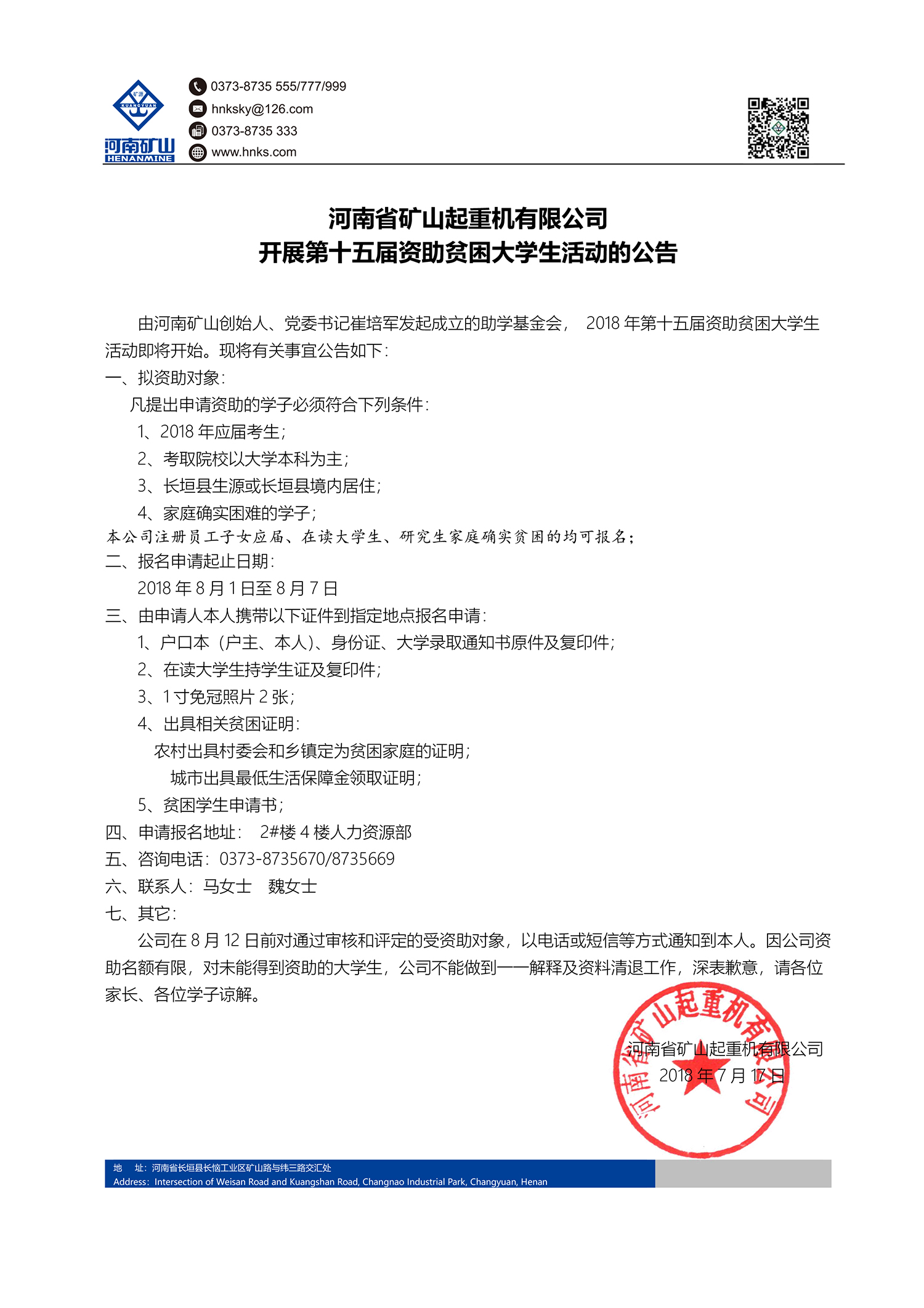 關于開展第十五屆資助貧困大學生活動的公告